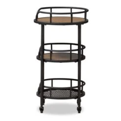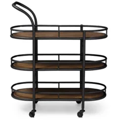 3 Tier Bernard Industrial Metal And Wood Mobile Wine Bar Cart Black/Walnut – Baxton Studio
