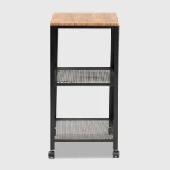 Verna Metal And Wood Kitchen Serving Cart Oak Brown/Black – Baxton Studio