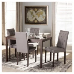5pc Honore Mid Century Modern Light Wood Finished Matte Frame Dining Set Light Brown – Baxton Studio