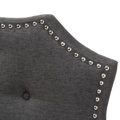 Classic finishes and an elegant curved shape make the Aurora fabric upholstered headboard the perfect centerpiece in your bedroom or guest room. Constructed of solid rubberwood frame, the Aurora headboard is upholstered in greyish beige or dark grey polyester fabric that is durable. Featuring curvaceous style lines with button-tufted design, the Aurora is glamorously trimmed with silver nail heads. The headboard is supported sturdily by solid wood posts and is exceptionally cushioned to provide softness and shape while you sit up. Made in Malaysia, the headboard requires assembly.
