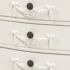 Bring graceful organization to your interior with the fantastic design of the Callen end table. Made in China, this handy piece is constructed from sturdy wood. Four drawers provide exceptional storage space for a variety of household essentials and reserve the tabletop for daily use. The Callen will arrive fully assembled and is adorned with floral moldings for an elegant display that is sure to stand out. Metal drawer knobs add a minimalist touch, making the Callen end table a resourceful yet stylish addition to any space. Overall Dimensions: 27.00″ High x 18.30″ Wide x 14.30″ Deep; Drawer(Each): 12.60″ Wide x 13.00″ Deep x 3.50″ High; Legs: 6.30″ High;