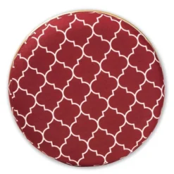 Add a dash of glamour to any space with the Candice ottoman. This metal ottoman features a stunning gold-toned frame that gives the piece a light, dainty feel. The seat is upholstered in a sleek velvet fabric that displays a quatrefoil pattern for a bold, eye-catching look that complements the gold finish on the frame. Use this exquisite piece as an extra seat or as a footstool. The Candice ottoman is made in China and will arrive fully assembled. Dimensions: 14.57″ high x 16.54″ wide x 16.54″ deep; Seating dimensions: 16.54″ wide x 16.54″ deep x 14.57″ high (from floor);