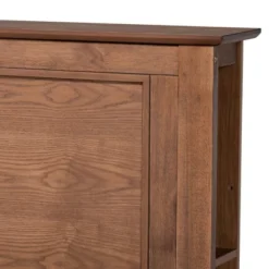 Enhance your bedroom with the earthy warmth and utility of the Danielle bed. Its large headboard is framed in sharp lines and contains three shelves on either side, ideal for displaying books and decor. Made in Malaysia, the bed is supported by classic ring turned legs that allow for ample storage space underneath the platform. Assembly is required and a box spring isn’t necessary, as the bed comes with internal slats for mattress support. Ash walnut brown finished wood creates a rustic feel, while the immaculate craftsmanship of the wood gives the Danielle a hint of elegance. Dimensions: 47.95″ high x 59.29″ wide x 85.98″ deep; Headboard: 47.95″ wide x 59.29″ long x 1.1″ thick; Height from floor to top of slat: 12.4″ high; Legs: 14.92″ high; Inside dimensions (mattress size): 54″ wide x 74″ deep; Storage: 5.47″ wide x 10.63″ deep x 44.49″ high;