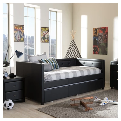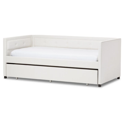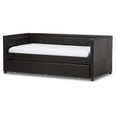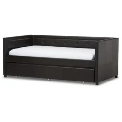 Frank Modern And Contemporary Faux Leather Button – Tufting Sofa Daybed With Roll – Out Trundle Guest Bed – Twin – Baxton Studio
