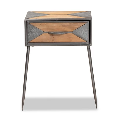 A contemporary take on industrial design, the Laurel end table enriches any space. Made in China, the Laurel is comprised of an antique gray finished metal frame combined with whitewashed oak finished wood and further enhanced with sleek, angular accents. One spacious drawer provides ample storage for a variety of household essentials. Requiring assembly, the drawer features a vintage style handle for easy access. An eye-catching accent that transforms any space, the Laurel end table is an exceptional addition to the modern home. Dimensions: 25.2″ High x 17.7″ Wide x 14.2″ Deep; Drawer: 6.1″ High x 16.5″ Wide x 13.4″ Deep; Legs: 17.3″ High;