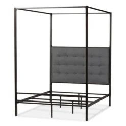 Featuring modern and contemporary style, the Eleanor’s clean lines are a streamlined update to a traditional four-poster shape. Constructed of tubular metal frame, the Eleanor is upholstered with padded cushion for your leaning comfort. To keep up with style and character, the Eleanor showcases button-tufting design to capture all of the eyeballs with its gray polyester upholstery. The box frame floats on an airy space, providing substantial storage space for your bedroom clutters under the bed base. Four metal bars and metal legs supporting the bed base for a strong structure. To complete this canopy bed frame, you will need a US standard size box spring and mattress. Made in Malaysia, the Eleanor requires assembly.