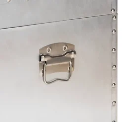 Bring chic industrial style into your space with the Serge cabinet. Constructed from wood and metal, the Serge features a unique lift-top compartment with ample storage space. Two drawers provide additional space to keep items organized. Polished silver metal drawer handles add a sleek touch. Inspired by vintage storage trunks, the Serge is embellished with rivets and corner protectors. This cabinet is well suited for a living room or entryway. The Serge cabinet is made in China and will arrive fully assembled. Dimensions: 23.23″ High x 19.09″ Wide x 13.98″ Deep; Drawer: 14.57″ High x 10.83″ Wide x 4.72″ Deep; Inner Shelf: 6.89″ High x 17.72″ Wide x 12.6″ Deep;