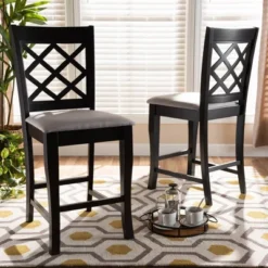 A fusion of traditional design elements and modern craftsmanship make the Alora counter stool a stunning addition to any dining space. This solid oak wood chair displays a sleek espresso brown finish that complements the light polyester fabric upholstery. Padded with foam for the utmost comfort as you enjoy long dinners, the Alora features a striking cut-out back for enhanced visual appeal. Constructed at counter height, the Alora is suitable for use with kitchen counters and pub tables. The Alora counter stool is made in Malaysia and requires assembly.