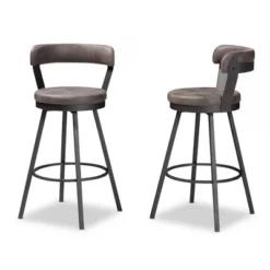 Achieve lasting style with the Arcene swivel bar stool. The sturdy metal composition and neutral coloring are indicative of the stool’s rustic and industrial-inspired design. The metal frame is finished in a matte antique silver, complemented by suede-like fabric upholstered seats. The seats of the Arcene are foam padded, and the open work chair backs are curved to encourage hours of comfortable seating. A 360-degree spin element keeps you in the flow of conversation. These stools can be easily coordinated with the existing decor in your kitchen, dining room, or breakfast nook. Made in China, the Arcene requires assembly. Dimensions: 40.94″ High x 19.49″ Wide x 19.49″ Deep; Seating Dimensions: 31.5″ High (from Floor) x 16.93″ Wide x 16.93″ Deep; Back: 9.44″ High; Legs: 27″ High