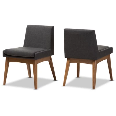 Enriched with finer detailing, the angular and cushioned Nexus dining side chair embraces comfort. Constructed of solid rubberwood frame in walnut finishing, the Nexus is upholstered in polyester fabric. It’s splayed leg design sets the stage for a mid-century modern appeal to your dining room. Comfortable foam padded seat and back for lasting comfort in enjoying everyday family dinners. Medium seat back that seamlessly tapers down creates a look of modern aesthetic. Made in Malaysia, the Nexus dining chair requires assembly. Dimensions: 29.92″ High x 21.46″ Wide x 23.03″ Deep; Seating Dimensions: 17.91″ High (from Floor) x 18.9″ Wide x 16.54″ Deep; Back: 14.37″ High; Legs: 14.96″ High