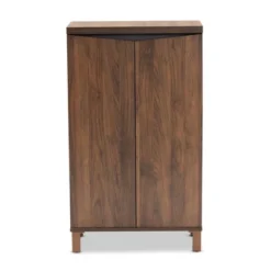 Modernize your entryway with the stunning design and convenience of the Talon shoe cabinet. Made in Malaysia, this handy piece is constructed from sturdy wood. Six shelves located behind the doors provide handy storage space and can support around 10 pairs of shoes, depending on size. Requiring assembly, the Talon is supported by straight legs for a sleek, modern outline that ensures excellent stability. A stylish and practical solution to your storage needs, the Talon shoe cabinet upgrades the modern home.
