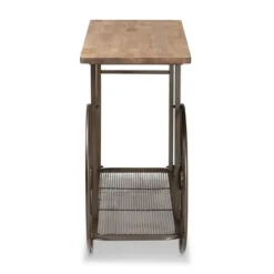Add rustic charm to your space with the Terence console table. Made in China, the Terence is comprised of a black finished metal frame fitted with a natural finished wood tabletop. A lower mesh metal shelf keeps various items on hand while organizing clutter. Requiring assembly, the Terence is fitted with decorative wheels that lend a unique, eye-catching aesthetic. Bring some vintage charisma to your space with the Terence console table.