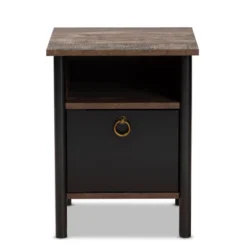 Add value to your bedroom with the rich wood tones and clean lines of the Vaughan nightstand. Made in Malaysia, the Vaughan is constructed from sturdy wood showcasing a striking union of dark brown and rustic brown finishes. One shelf and one enclosed compartment offer ample storage options for all your bedside essentials. The Vaughan requires assembly and is accented with a gold-tone metal ring pull that stands out beautifully against the dark wood finish. Outfitted with both fantastic utility and eye-catching style, the Vaughan nightstand is a distinguished addition to any home.