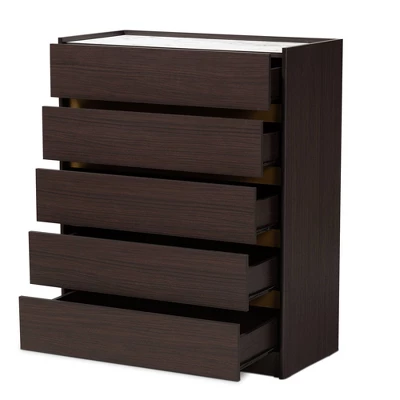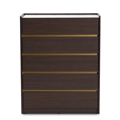 Walker Wood 5 Drawer Chest With Faux Marble Top Dark Brown/Marble/Gold – Baxton Studio